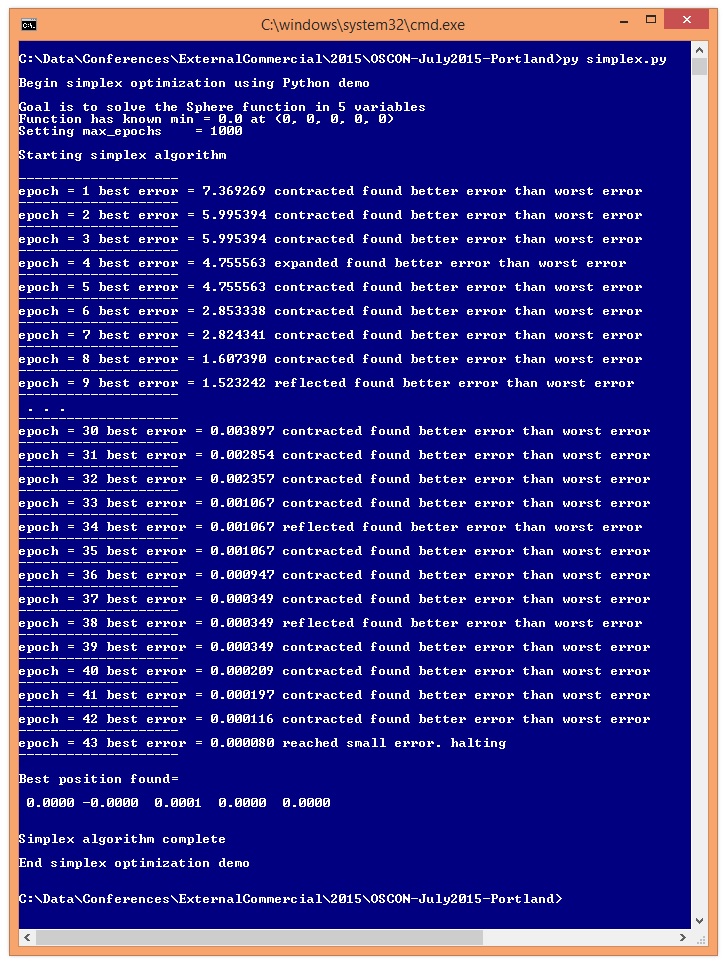 There are a lot of small but important details in the code. Simplex optimization is one of the oldest swarm optimization techniques, and it’s not used too often.